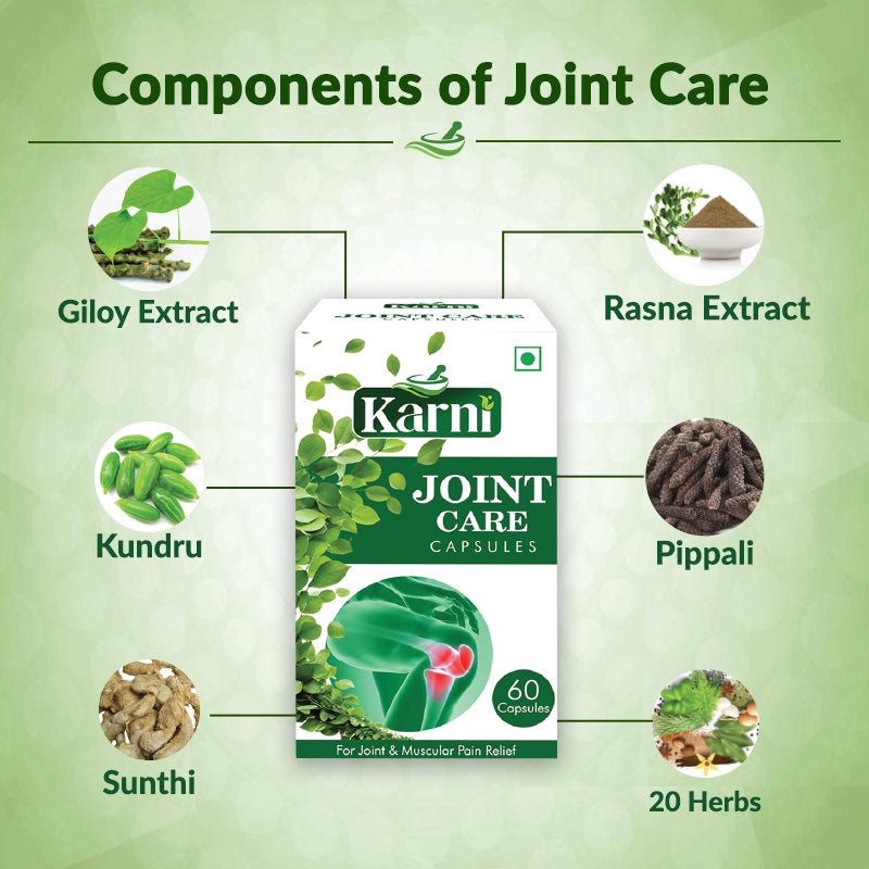 If you're looking for the best medicine for knee joint pain or a reliable ayurvedic medicine for joint and muscle pain, Karni Joint Care Capsules are your natural, long-term solution.