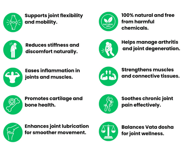 Enriched with time-tested Ayurvedic herbs like Shallaki, Ashwagandha, Nirgundi, Guggulu, and Methi, Karni Joint Care works at the root level to reduce joints and inflammation, support cartilage health, and ease muscle stiffness. It is especially effective as a knee joint pain remedy and helps in restoring strength and mobility in affected areas.